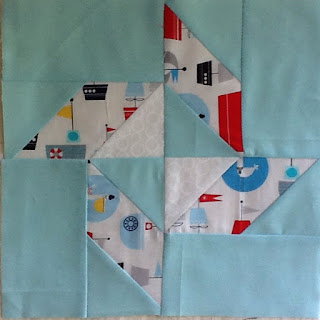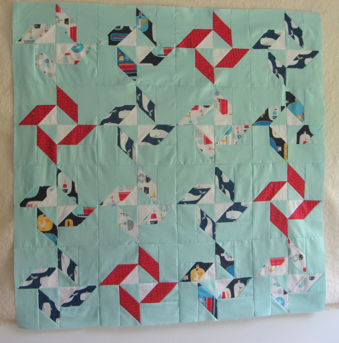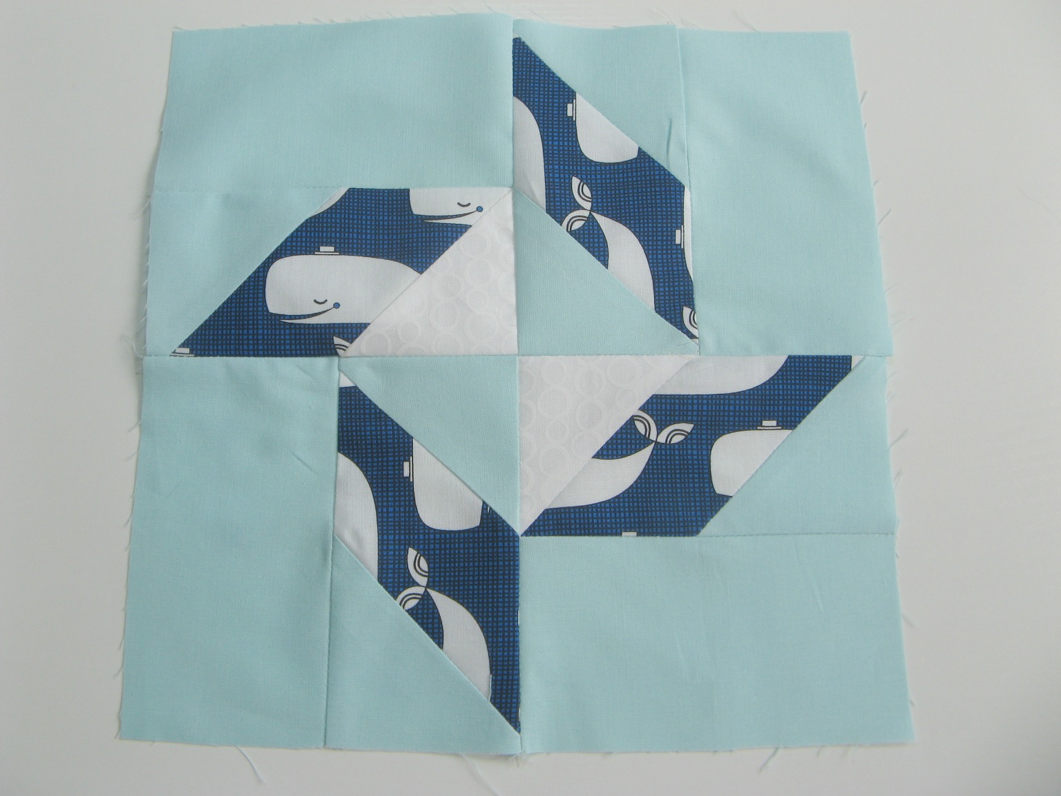 This traditional Flywheel block makes me think of the wheel used to steer a ship or the propeller driving it through the sea, but it could also work for aeroplanes, if baby is destined to be a flyer!