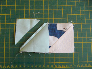 Fold down the triangular flap, ensuring that the triangle flap covers the whole of the corner - this means that you have stitched correctly. If not, then restitch before proceeding. Doing this step will make your blocks accurate.