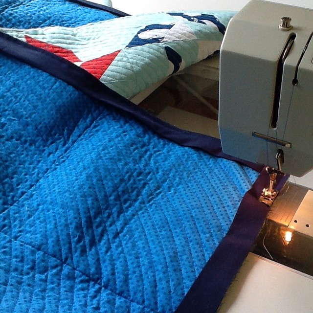 Then folded the binding toward the front of the quilt, and top stitched to the front. This makes a quick and secure binding which will hopefully be laundry and baby or toddler proof!