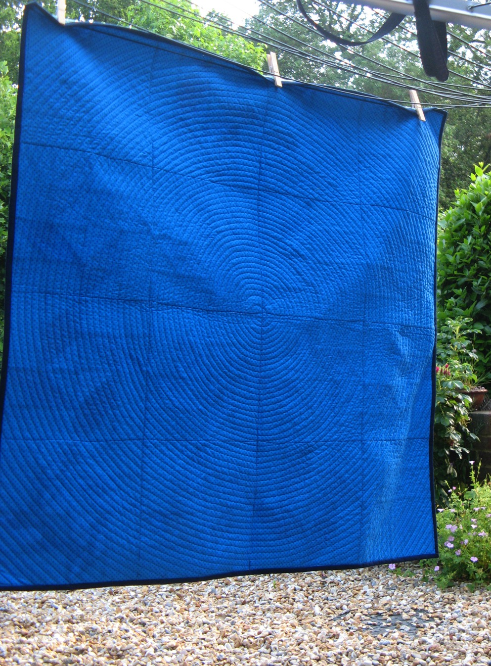 I quilted in the ditch along the seamlines between the blocks (see photo of back of quilt) to stabilise the layers. I find this helps to prevent the quilt sandwich from shifting or stretching when quilting on the bias as you do going round in circles.
