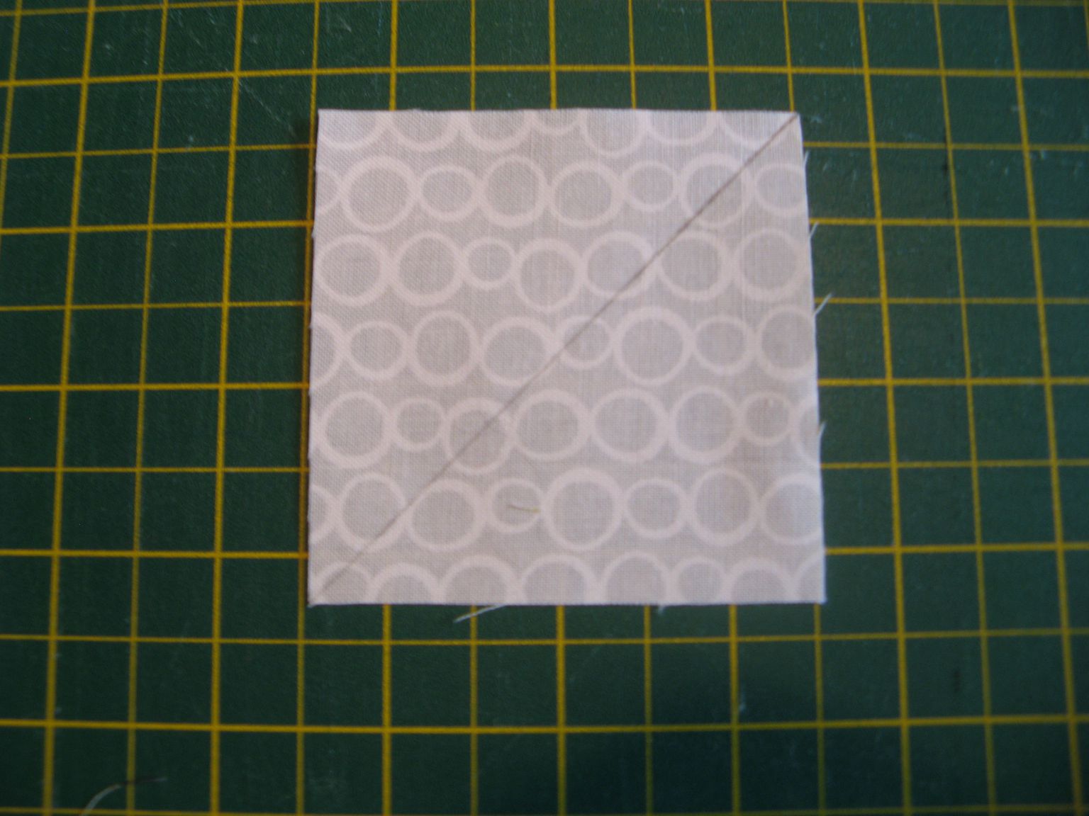Tip: I often just press the square diagonally in half and use the crease as my stitching line or use a pencil to mark a line, but you can use your preferred method just ensure that the mark is NOT permanent.